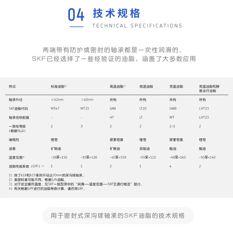 SKF深沟球轴承是一种仪器器件,有开式、双面带密封圈,带密封的轴承在外圈上开有可装密封圈或防尘盖的沟槽,适用于高转速甚至极高转速的运行。...